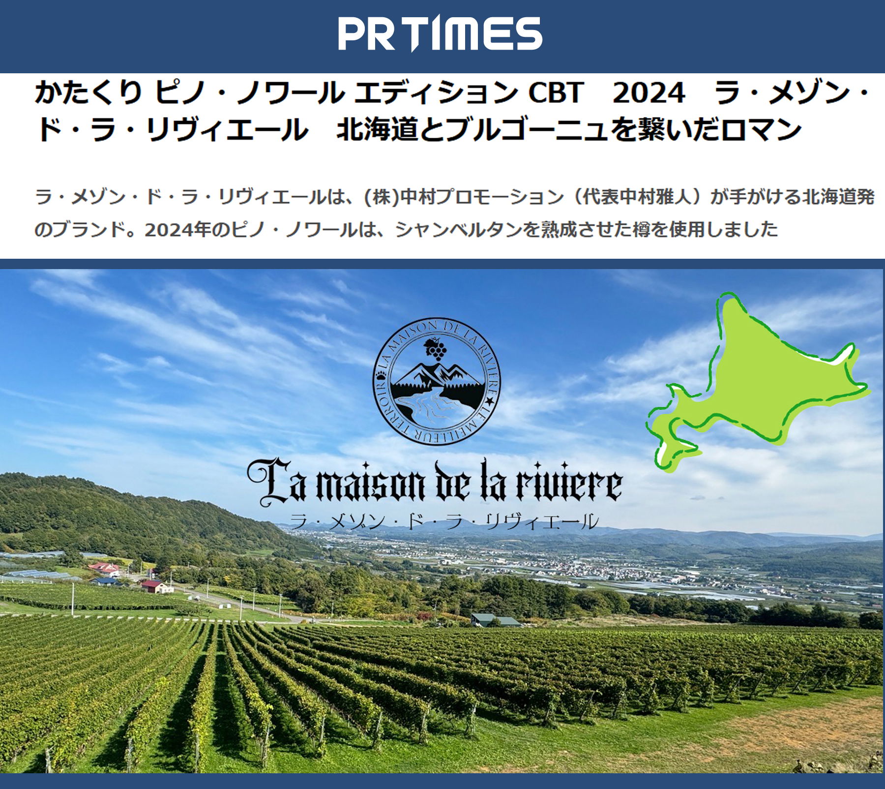 ラ・メゾン・ド・ラ・リヴィエールは、(株)中村プロモーション(代表中村雅人)が手がける北海道発のブランド。2024年のピノ・ノワールは、シャンベルタンを熟成させた樽を使用しました株式会社中村プロモーション2025年11月4日 09時31分