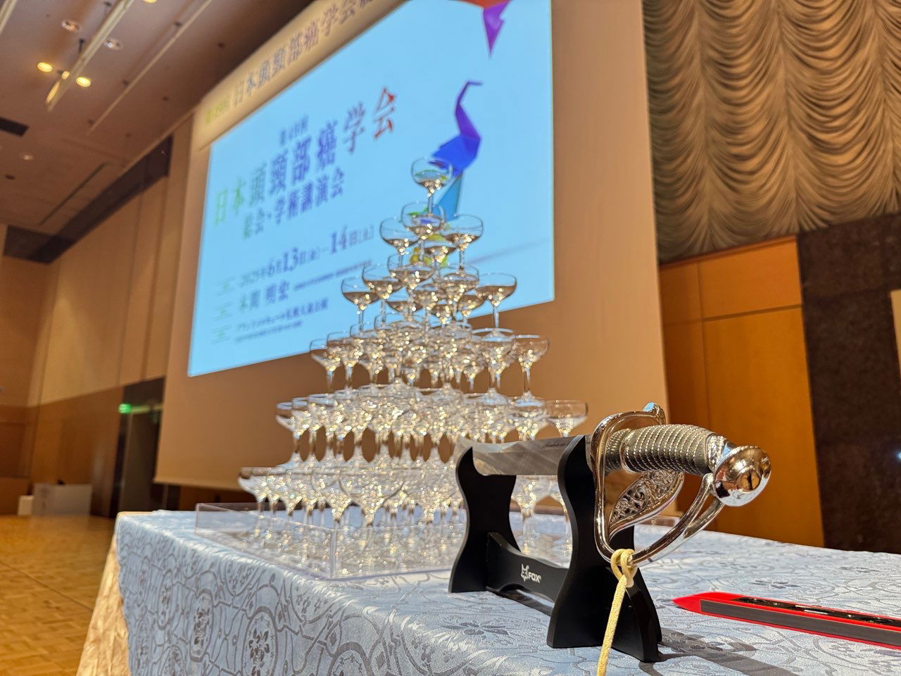 第49回日本頭頸部癌学会総会・学術講演会 会長 本間明宏(北海道大学耳鼻咽喉科・頭頸部外科学教室)シャンパンサーベラージュ シャンパンピラミッド タワーのアトラクションをいたしました