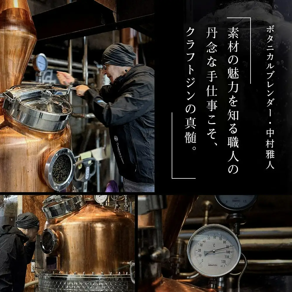 ボタニカル ジュニパーベリー、レモンピール、オレンジピール、アンゼリカルート、オリスルート、カモミール、ハマナス、ミント(フレッシュ)神成誠の利尻昆布、ミヤマビャクシン、利尻ビャクシン、ニガヨモギ、トドマツ(利尻山)