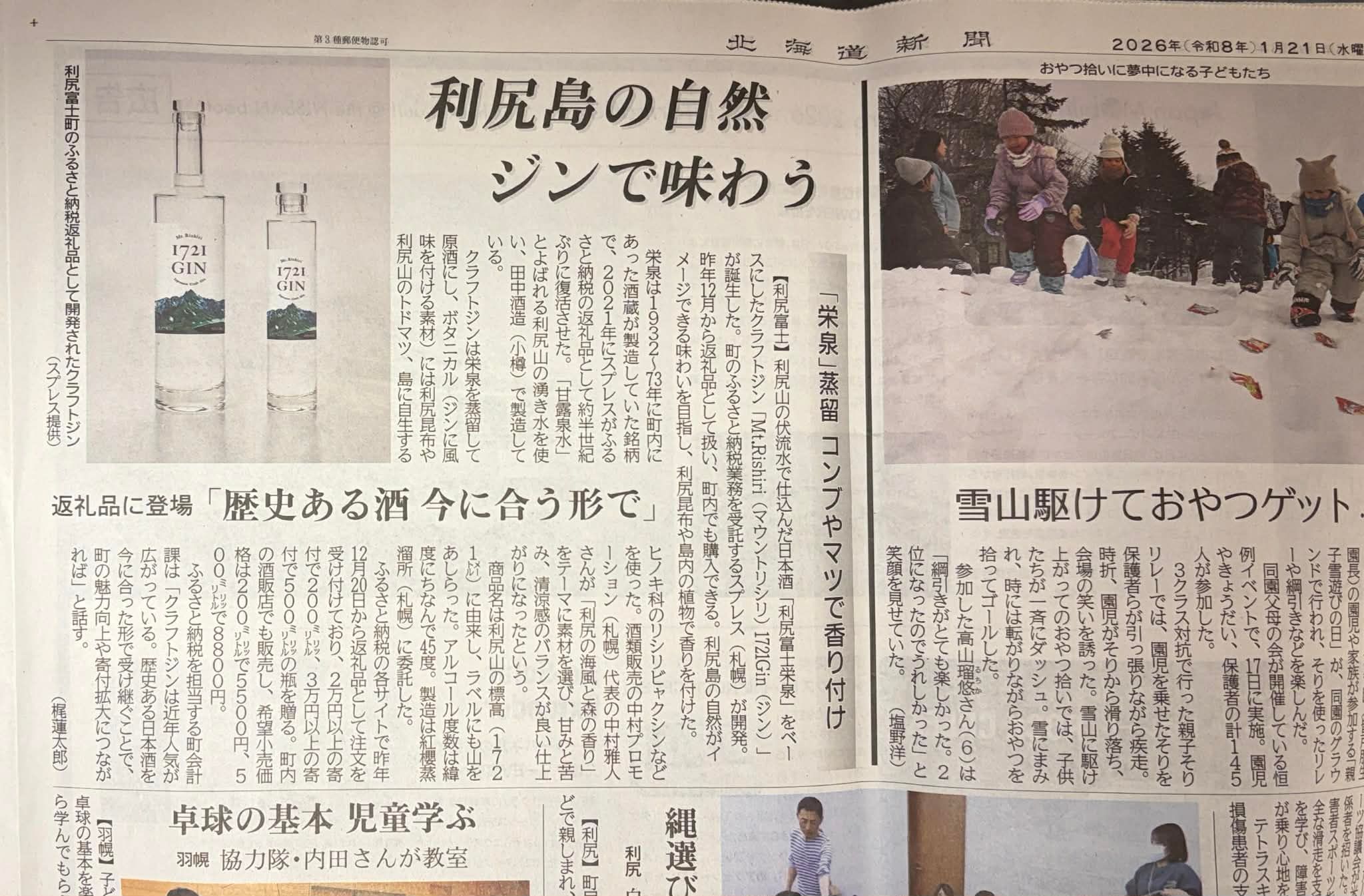 利尻富士町との官民連携プロジェクトとしてクラフトジン利尻山(リシリザン)1721「Mt.Rishiri1721Gin(読み:マウント・リシリ・イチナナニイチ・ジン)」を発売。